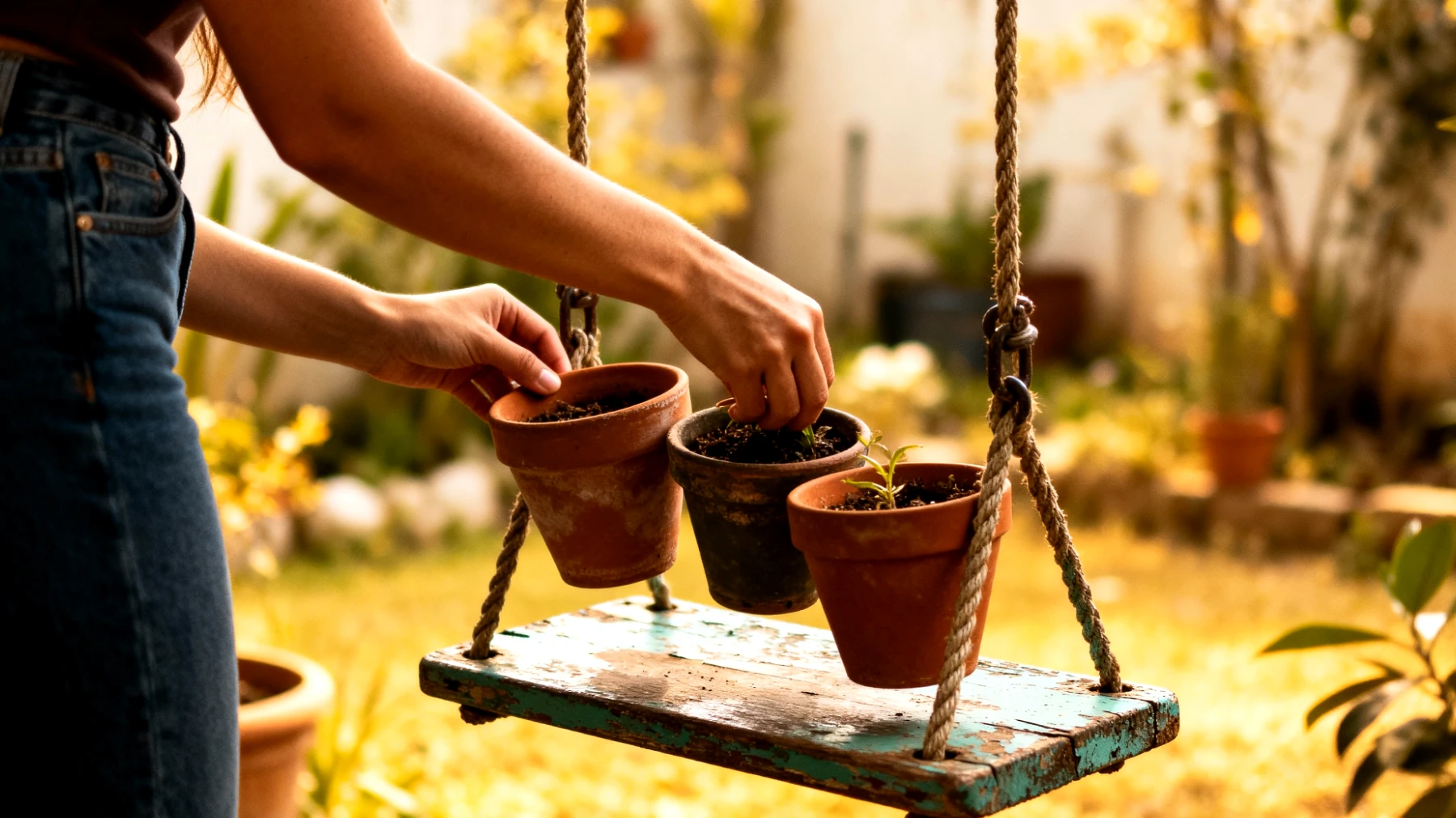 Eine Gartenschaukel besitzt statische Eigenschaften, die für vertikale Begrünung fast ideal sind. Ihr Rahmen aus Stahlrohr oder Hartholz ist für hohe Last und Bewegung ausgelegt, was sie stabiler macht als viele gekaufte Pflanzenständer. Diese Tragfestigkeit nutzt man hier neu: nicht mehr für schwingende Körper, sondern für die hängenden Systeme der Töpfe. Traditionelle vertikale Gärten basieren häufig auf Wandhalterungen oder Rankgittern, die den Nachteil haben, das Gewicht auf wenige Punkte zu konzentrieren. Die Schaukel dagegen verteilt die Last über zwei seitliche Stützen und eine obere Querstange – physikalisch günstiger, wenn mehrere mit Erde gefüllte Pflanzgefäße aufgehängt werden.