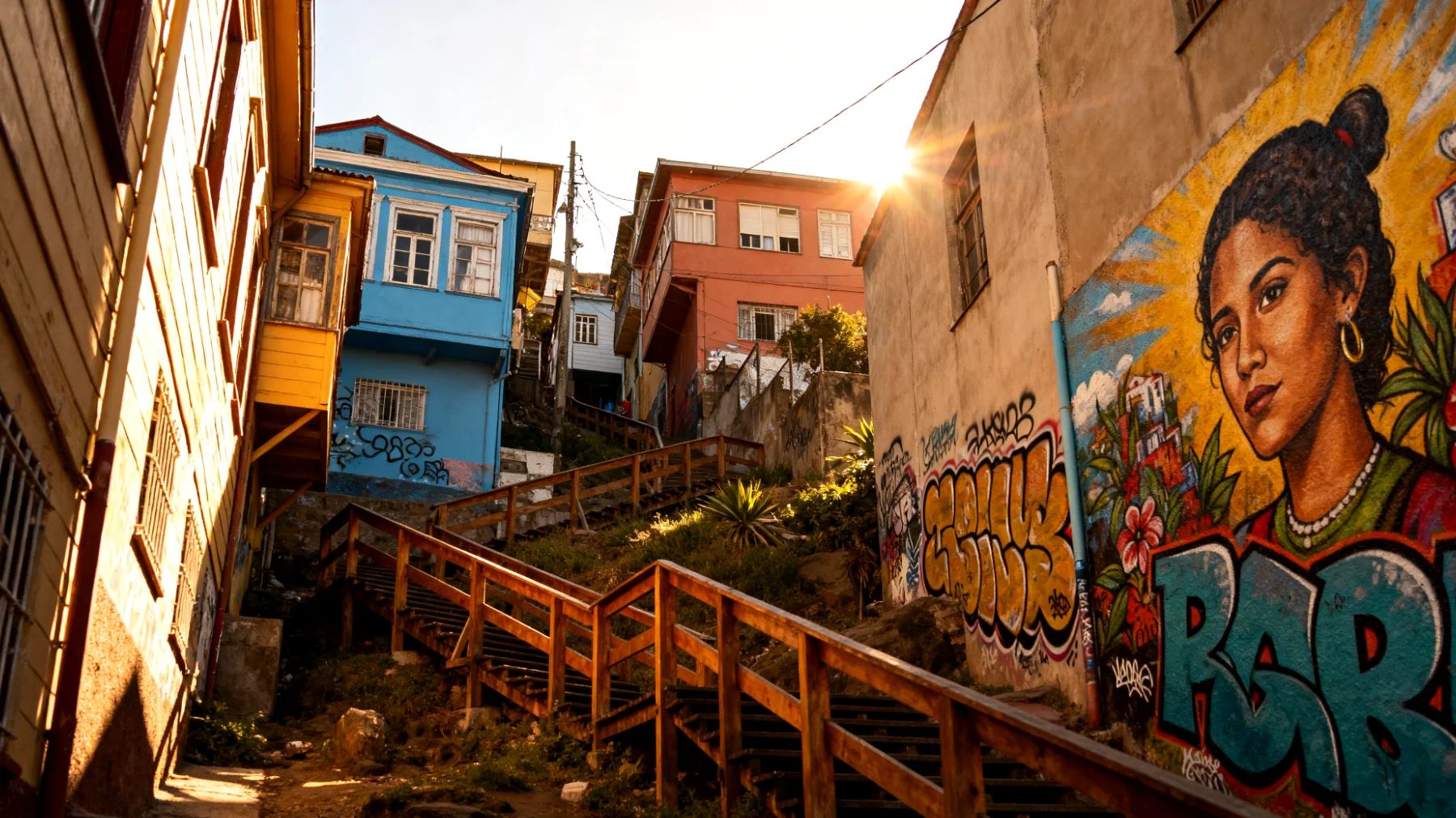 Das Herz von Valparaíso schlägt in seinen cerros, den malerischen Hügeln, die sich vom Hafenviertel erheben. Cerro Alegre und Cerro Concepción gelten als die romantischsten Ecken der Stadt – hier verschmelzen viktorianische Architektur, farbenprächtige Streetart und versteckte Aussichtspunkte zu einem einzigartigen Ambiente. Schlendert durch die kopfsteingepflasterten Straßen, vorbei an pastellfarbenen Häusern mit kunstvoll verzierten Balkonen und entdeckt versteckte Treppen, die zu unerwarteten Panoramen führen.