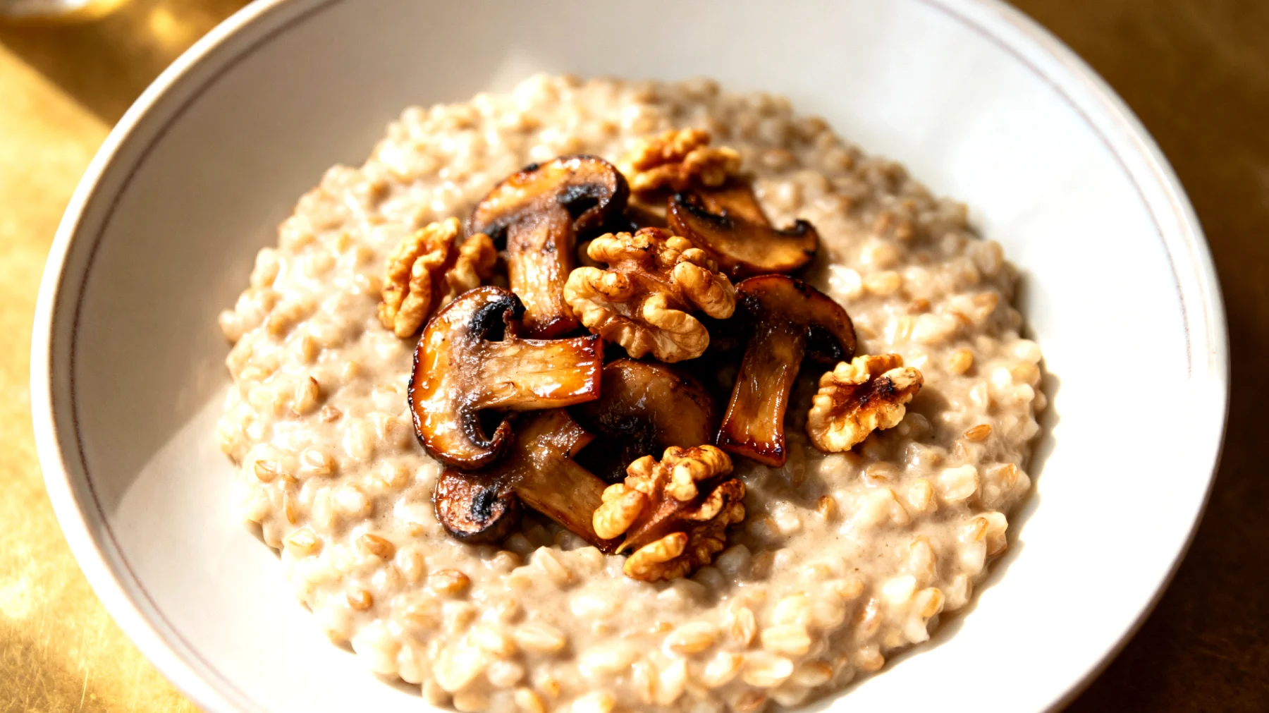 Die Portionsgröße sollte sättigend, aber nicht überwältigend sein. Eine zu große Menge belastet den Verdauungstrakt und zieht Energie vom Gehirn ab – genau das Gegenteil dessen, was man erreichen möchte. Die empfohlenen 60 bis 80 Gramm Rohmenge ergeben nach dem Kochen etwa eine mittlere Schüssel, die zusammen mit Pilzen und Walnüssen für ein angenehmes Sättigungsgefühl ohne Schwere sorgt.