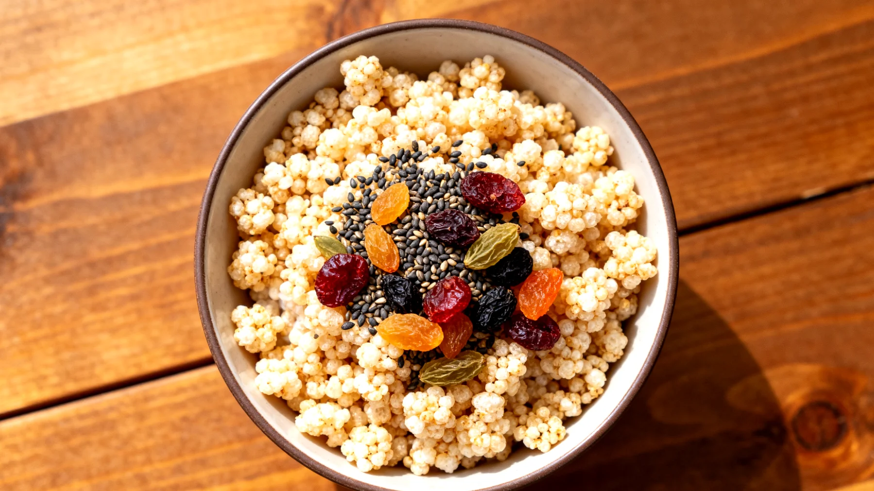 Was diese Mischung ernährungsphysiologisch so durchdacht macht, ist das Zusammenspiel verschiedener Nährstoffgruppen. Die gepoppten Amaranth-Körner liefern schnell verfügbare Kohlenhydrate mit einem Gehalt von etwa 60 bis 66 Gramm pro 100 Gramm, die die nach dem Training entleerten Glykogenspeicher rasch auffüllen. Die Trockenfrüchte ergänzen diesen Effekt mit natürlichem Fruchtzucker und wertvollen Mikronährstoffen.